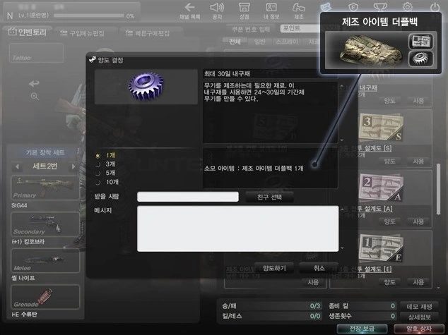 Durability item dan weapon recipe dapat diperoleh dari membunuh musuh selama bermain game, dari Battlefield Supply, atau benda pembongkaran. Mereka dapat dirakit untuk mendapatkan daya tahan yang lebih kuat atau resep. Namun, perlu 500 poin untuk setiap permainan merakit dan mendapatkan daya tahan yang lebih kuat bahan/resep tidak dijamin.