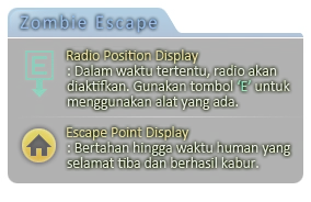 - Human: Melarikan diri dari kejaran Zombie ke Escape Zone sebelum waktu yang ditentukan habis.