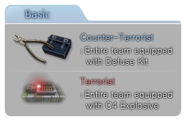 ในการแข่งขั้น Counter-Terrorist ทุกคน จะได้รับ Defuse kit รวมทั้งสามารถเลือกใช้อาวุธของฝ่าย Terrorst ได้