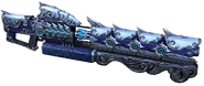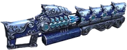 This weapon fires special rounds said to be imbued with the energy of the ice dragons of legend. The rounds detonate on hit, inflicting substantial damage. It can be modified to dispense mines that use the power of explosions to inflict immense damage to enemies. The mine can be detonated by enemies, or you can manually detonate them yourself for a quick, theoretically harmless jump to safety.