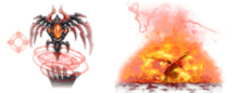 - <Fiendish Purge>: Summons an fallen angel upon aimed location, and deals a devastating blow. Cast a demon seal that draws nearby enemies in and inflict damage in the area.