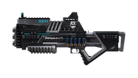 It is a bullpup style pump action shotgun designed to use 25 elastic alloy bullets. It is specially crafted to use Elastomeric Alloy that allows the bullets to bounce off quickly.