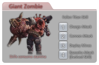 Fallen Titan is a Vanguard commander who has fallen victim to the Z-Virus and mutated into a colossal abomination. It appears to engage the survivors of Vanguard Lab from escaping to the Panic Room.