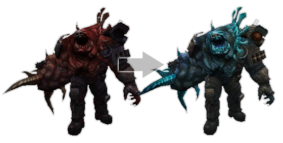Fallen Titan's evolution will change his appearance into bluish color scheme with some part colored cyan. The Fallen Titan will also gain access to its fourth skill once evolved.