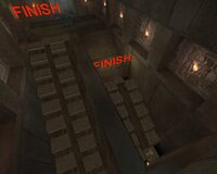 Players are only equipped with a melee weapon and must reach the finish line by passing through several obstacles. This map requires the players to have jump skill more than the previous Jump1 map. The player that has scored the fastest time is the winner.