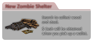 Have the chance to loot money, woods or steel from killing zombies. | |